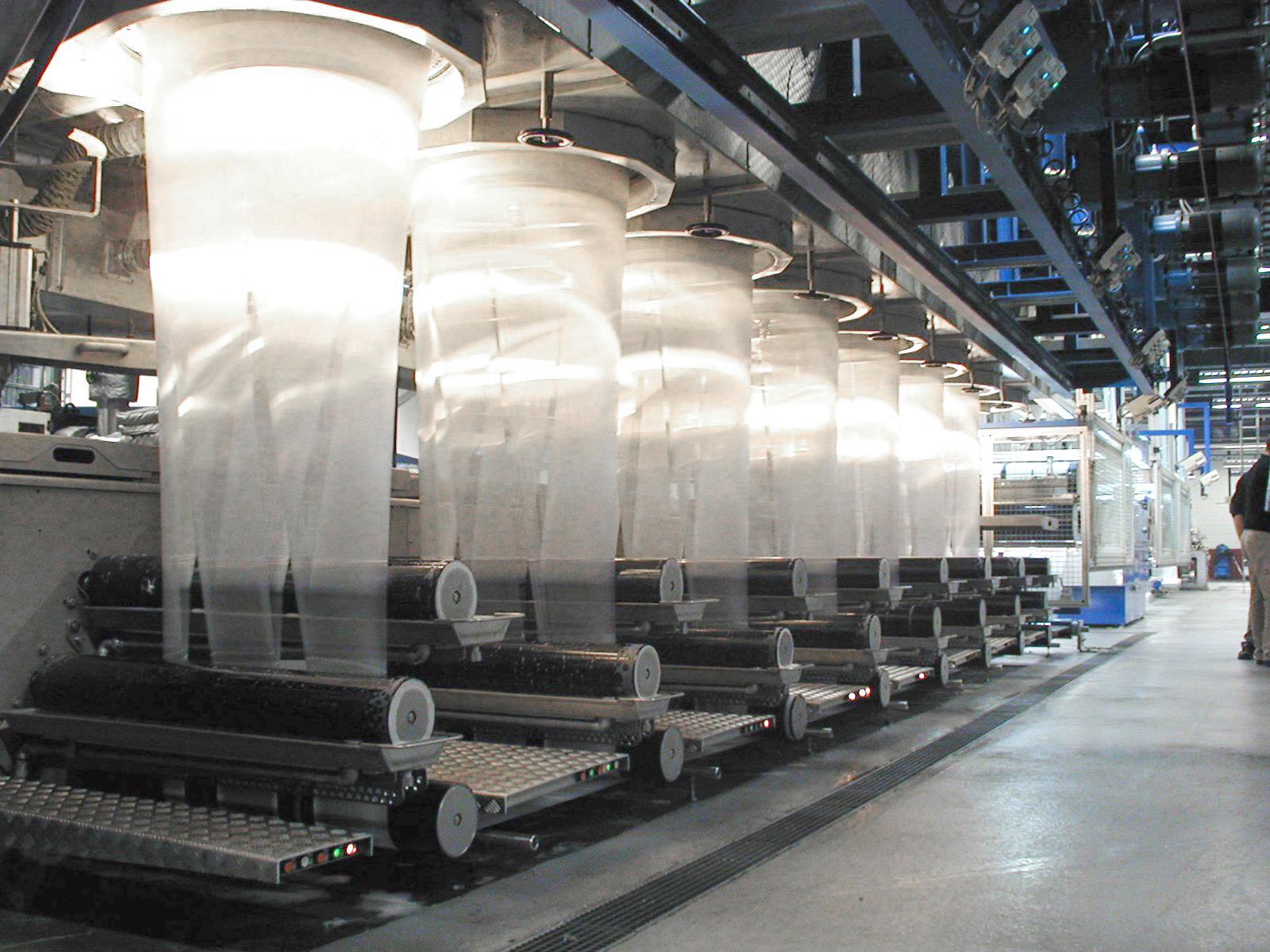 The inline technology includes the spinning operation and the subsequent drawing in one process step. With this compact construction it is possible to produce staple fiber capacities of up to 80 tons per day. The applications are as diverse as they are specific: from fibers for geotextiles, filtration applications or hygiene applications to reinforcement fibers through to fibers for automotive applications.